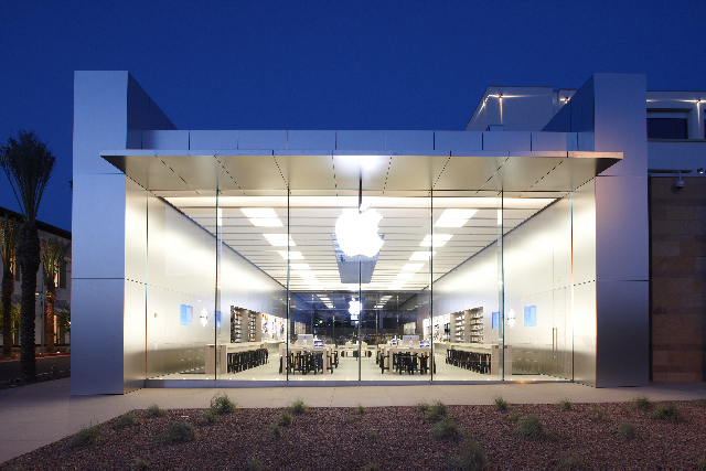 The Apple Store Scottsdale Quarter features a glass exterior, front to back. You can actually see straight through to the other side. The store also has 20-foot ceilings, giving the location a feeling of incredible space. Rounding out the aesthetics of the location is a 75-foot long skylight.